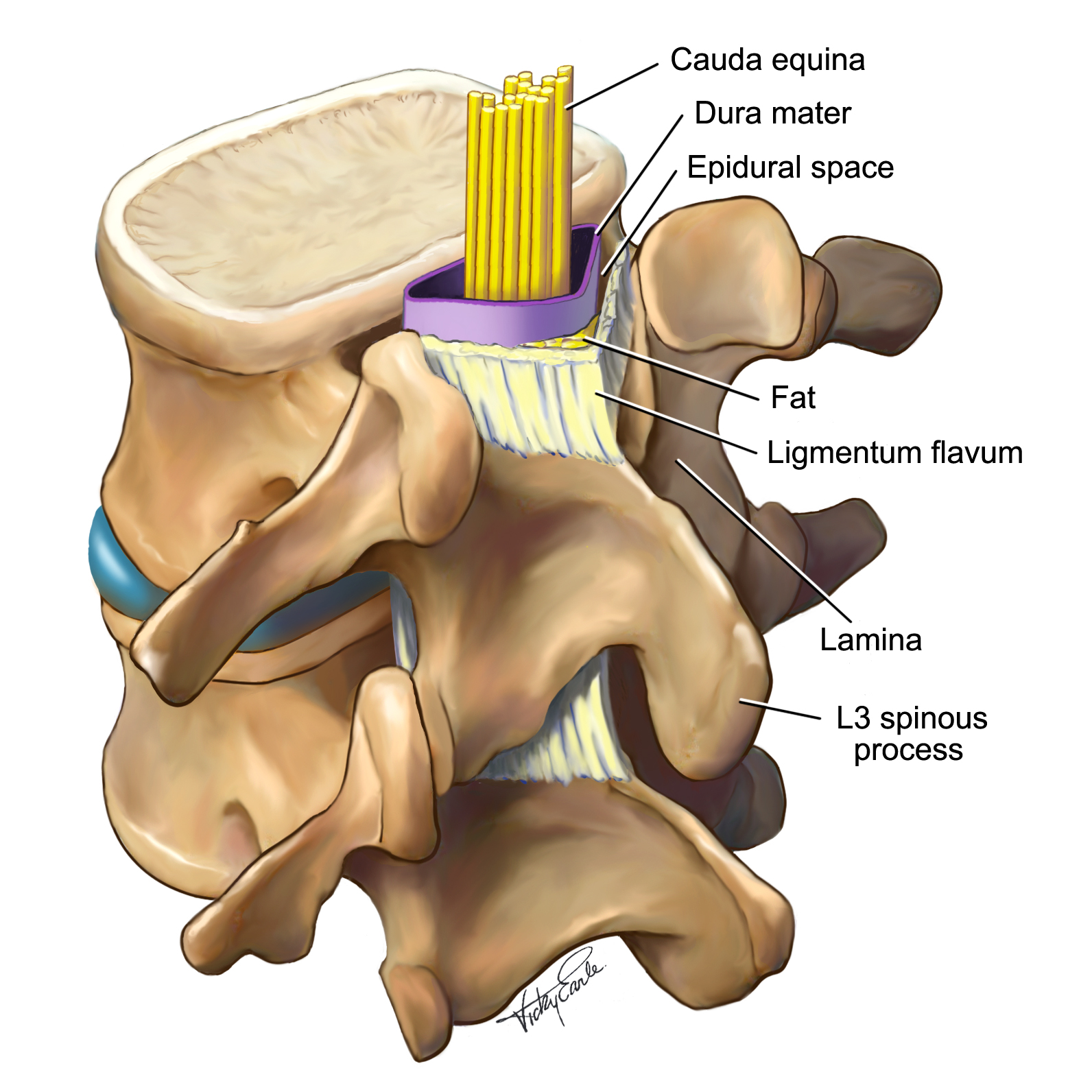 Lumbar vertebra with cauda equina